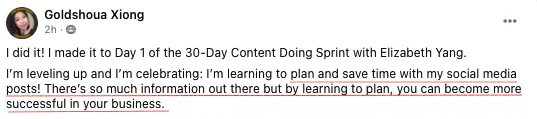 "You made me realize what I had been missing in my business. I needed structure and community to grow my business." —Angela Moua (Intuitive Healing Coach)